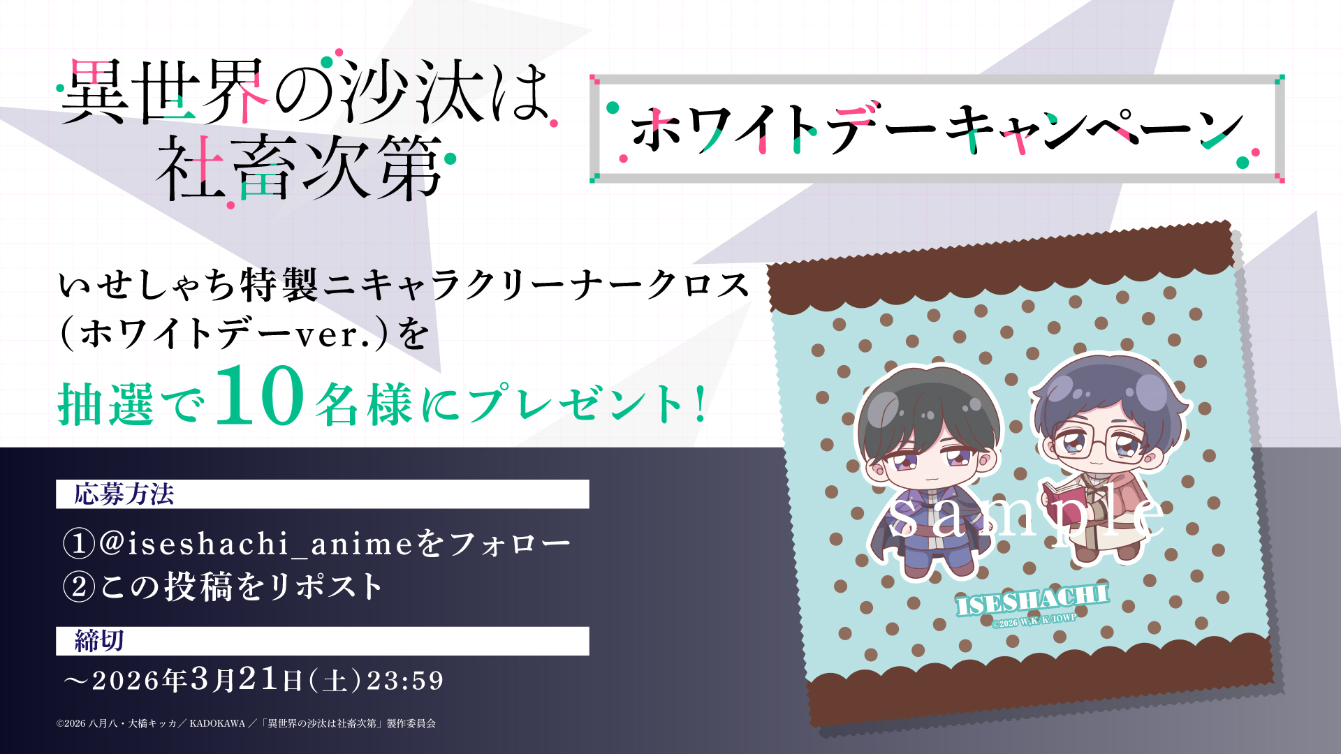 いせしゃち特製ミミニキャラクリーナークロス(ホワイトデーver.)が抽選で10名様に当たるホワイトデーキャンペーンの開催が決定!